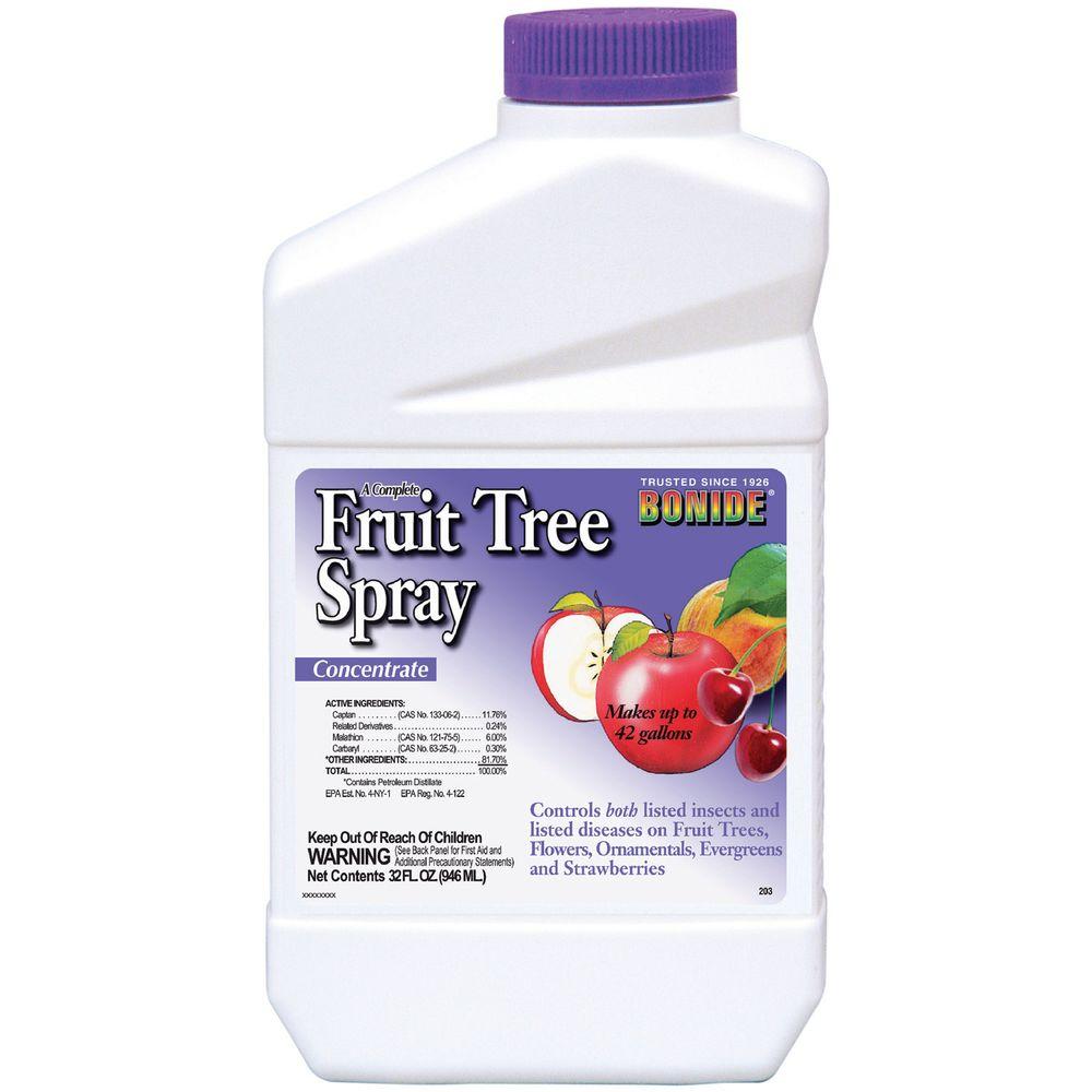 A complete liquid fruit tree spray and a spreader sticker. Simple to use. No plugged nozzles. As little as 11/2 tablespoons per application. Excellent for the home orchardist.