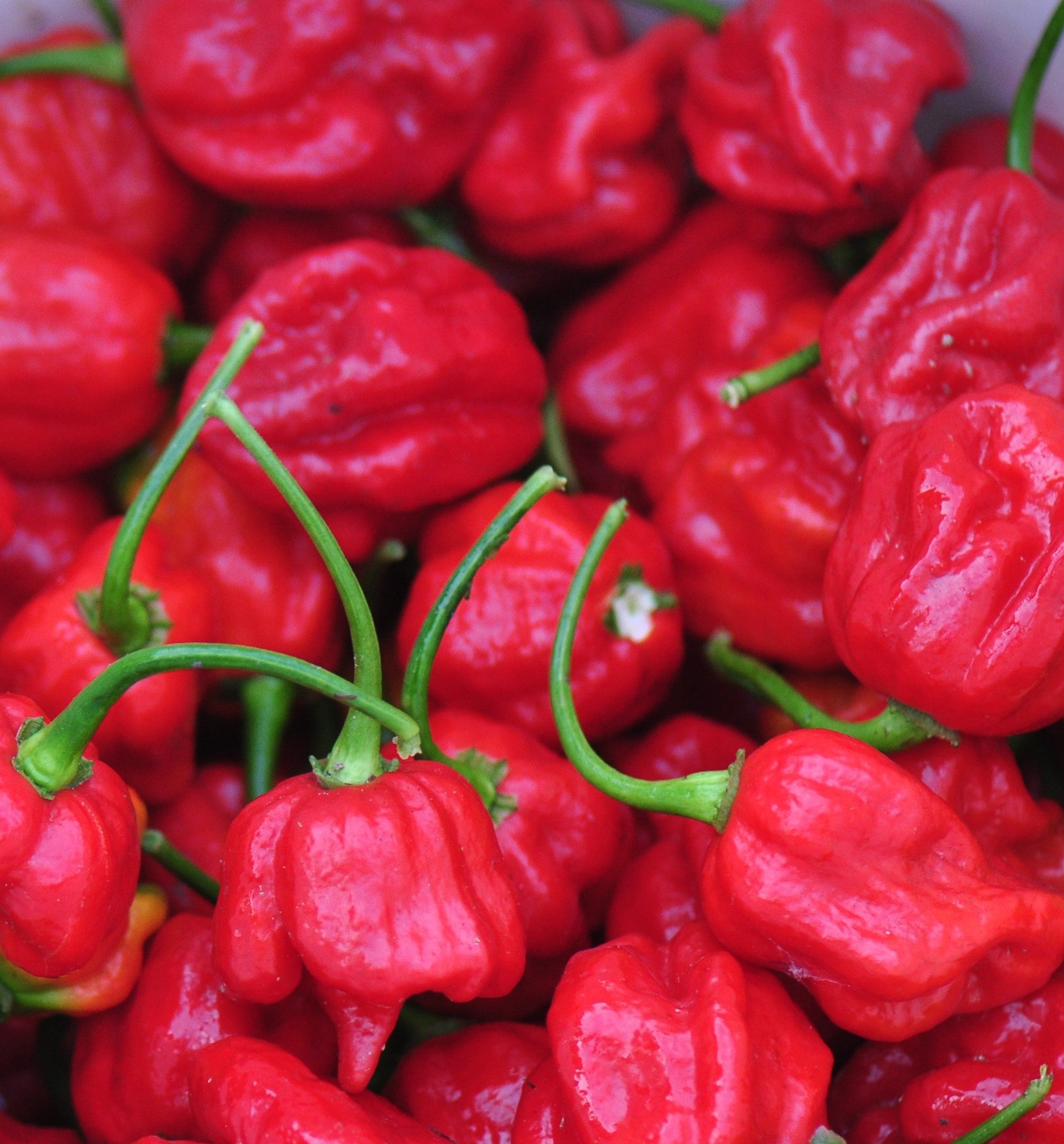 Wrinkled, lantern-shaped that ripens to a fiery red-orange. This killer hot chili pepper is 2nd to the hottest pepper. Measures 2.009.231 million Scoville Units.
